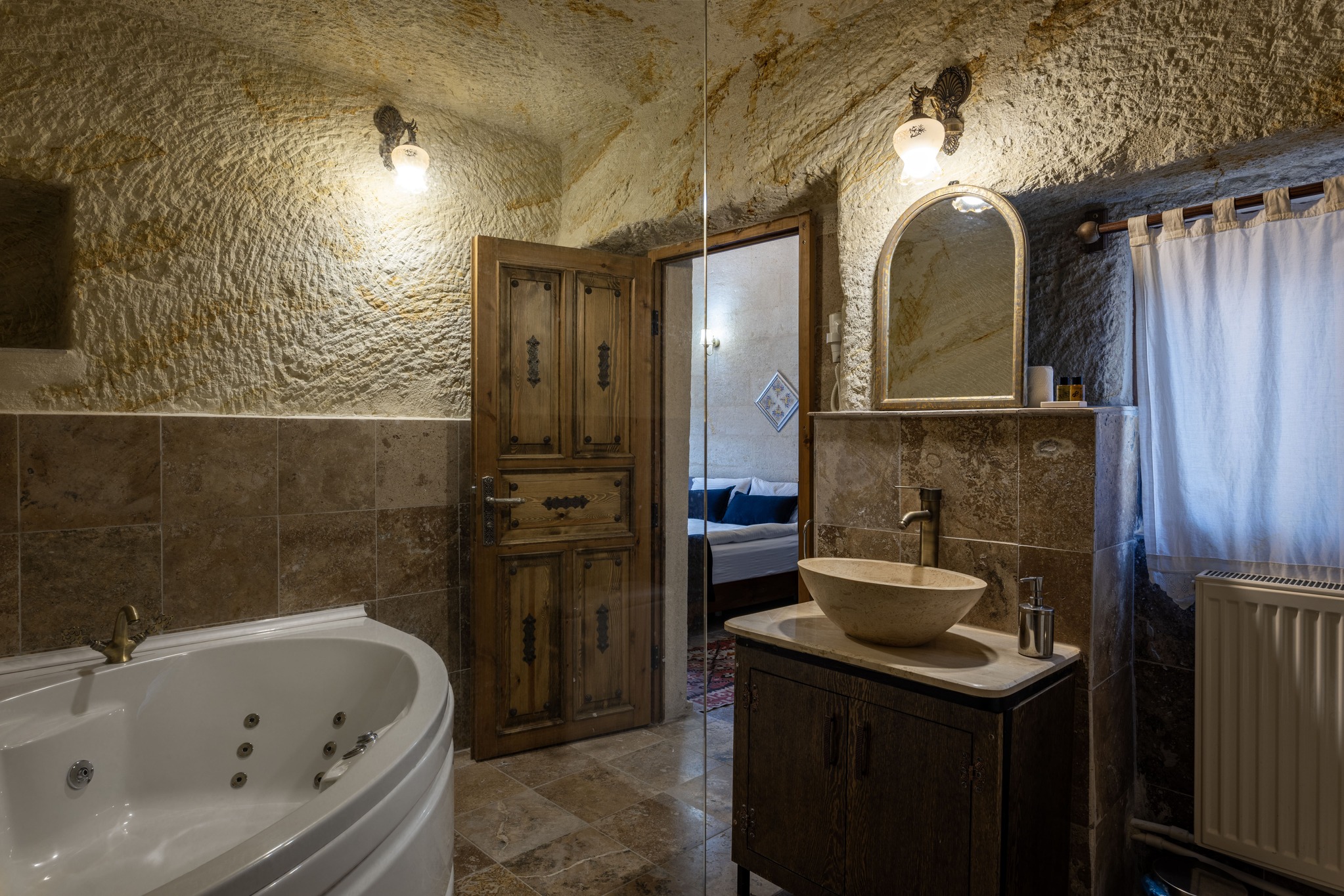 Suit Oda 301 – Özel Jakuzi ile Romantik ve Konforlu Konaklama, Kapadokya’nın kaya evlerinin otantik dokusunu modern lüks ile buluşturan özel bir tasarıma sahiptir. Bu oda, romantik bir kaçamak, balayı veya sessizlik arayan çiftler için özenle hazırlanmıştır ve her detay, misafirin rahatlığı ve unutulmaz bir deneyim yaşaması için düşünülmüştür.